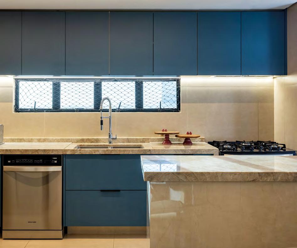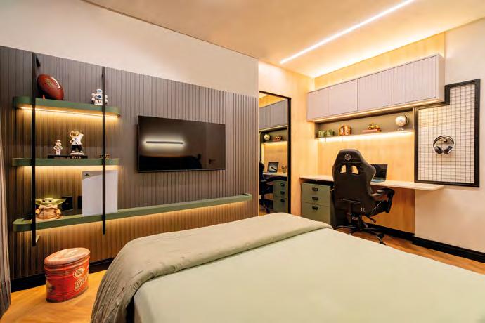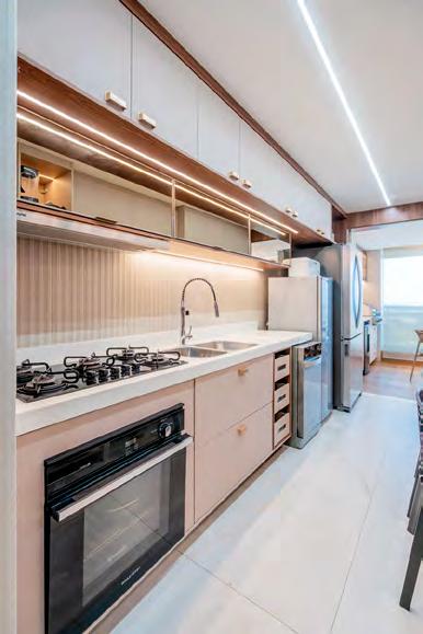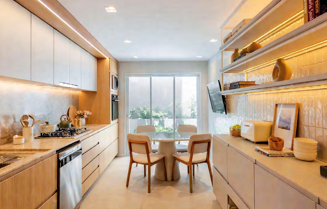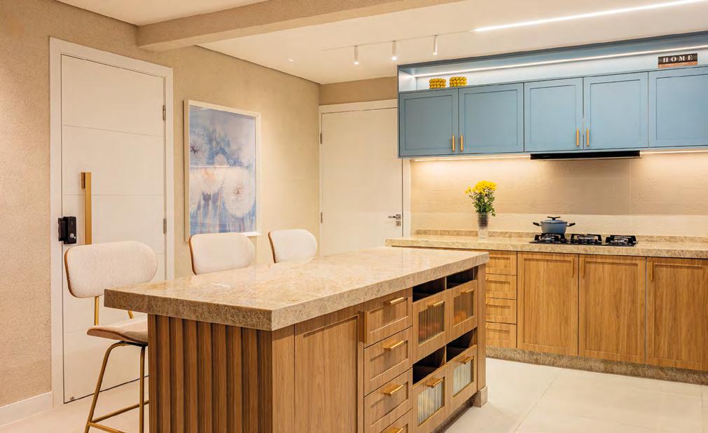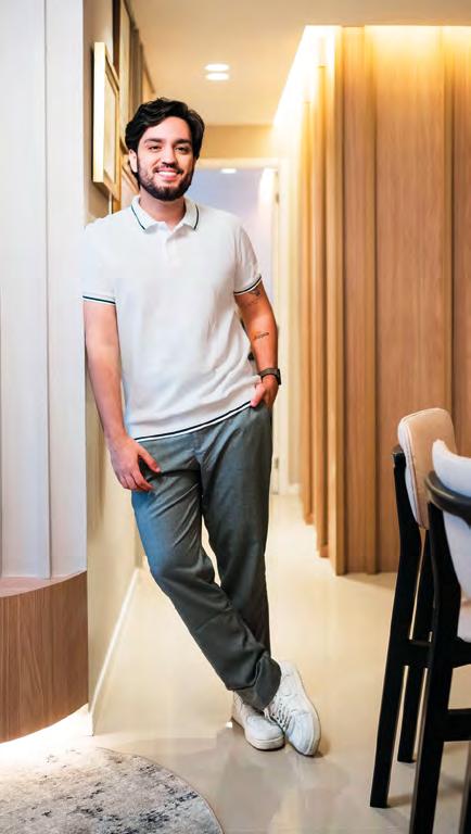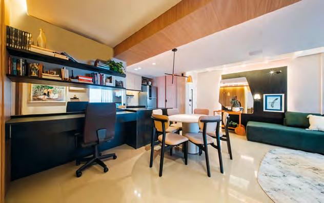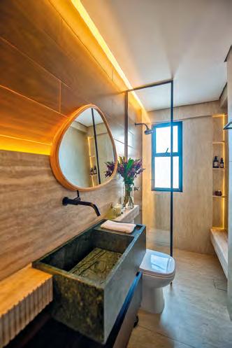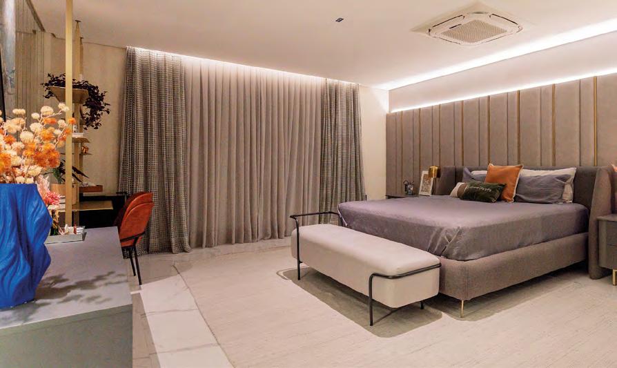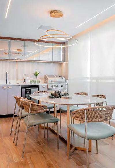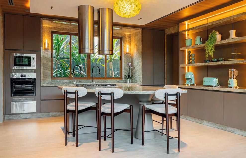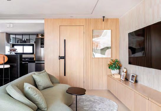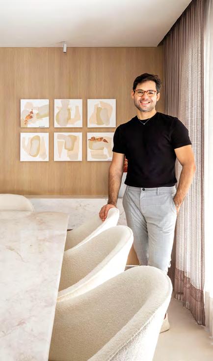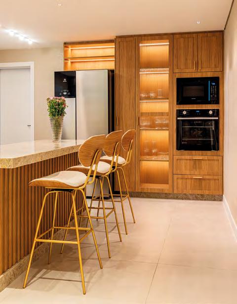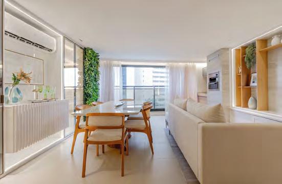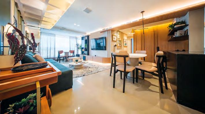 94- EM FOCO. Com atmosfera elegante e sensorial, o projeto de Denise Bringel une luz natural, integração e materiais sofisticados a uma curadoria de arte e design brasileiro, compondo uma residência pensada para o conforto e o bem-estar no cotidiano.