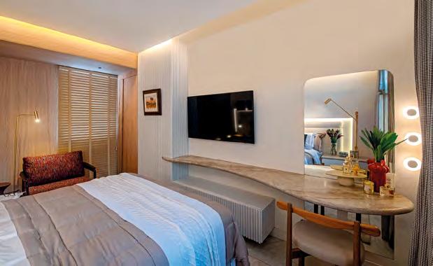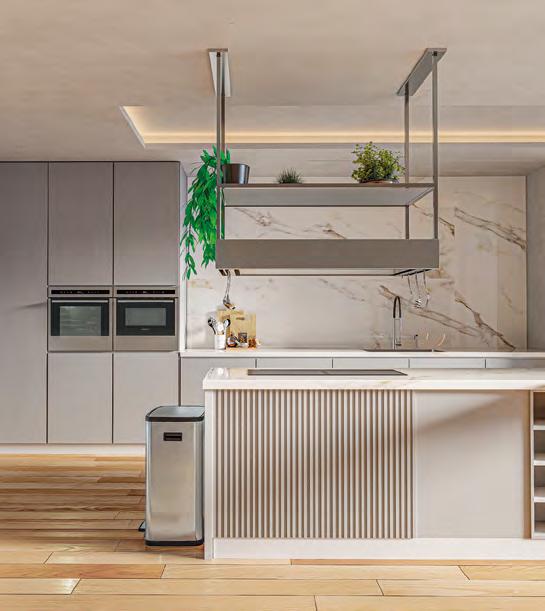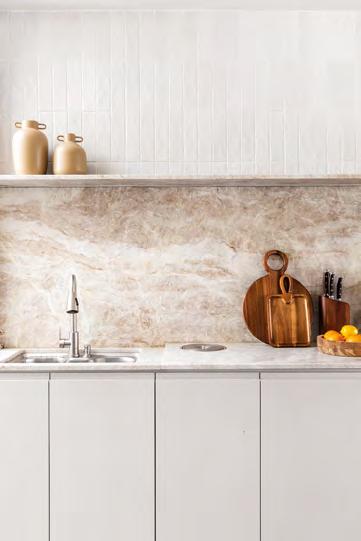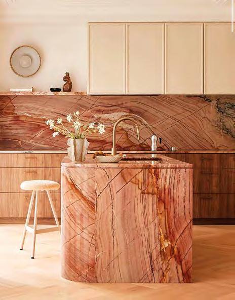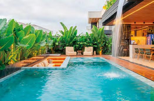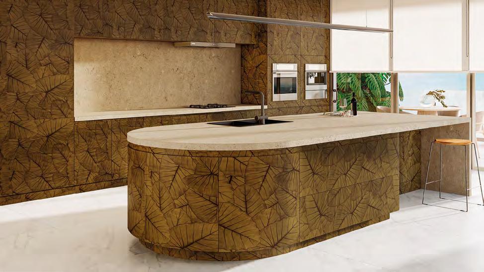 FORÇA TÁTIL A Tropical Stones reafirma a força das pedras naturais em um momento em que o setor volta a valorizar superfícies de presença, textura e identidade. Acima, o Bossa Nova Nero se destaca pela expressividade e pela sofisticação da pedra escura aliada a uma estética orgânica, menos previsível e mais sensorial, capaz de imprimir profundidade e contraste aos espaços.