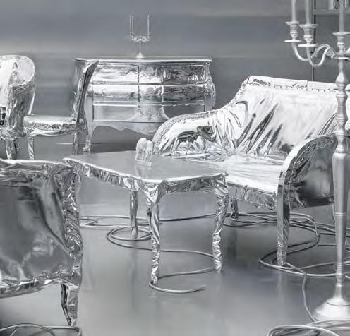 Harry Nuriev constrói seu trabalho a partir da transformação de elementos já existentes. Ao ressignificar objetos do comuns, o criador russo desenvolve uma linguagem que transita entre design, arte e artesanato, sempre marcada por uma forte dimensão conceitual. Na Maison&Objet Paris, essa visão se materializou em Transformism, instalação imersiva em que móveis e objetos surgiam recobertos por uma camada prateada, como se compartilhassem uma mesma essência. Mais do que um recurso estético, a cenografia propôs uma reflexão sobre o design como ferramenta de reinvenção dos objetos, dos espaços e da própria percepção sobre o cotidiano.