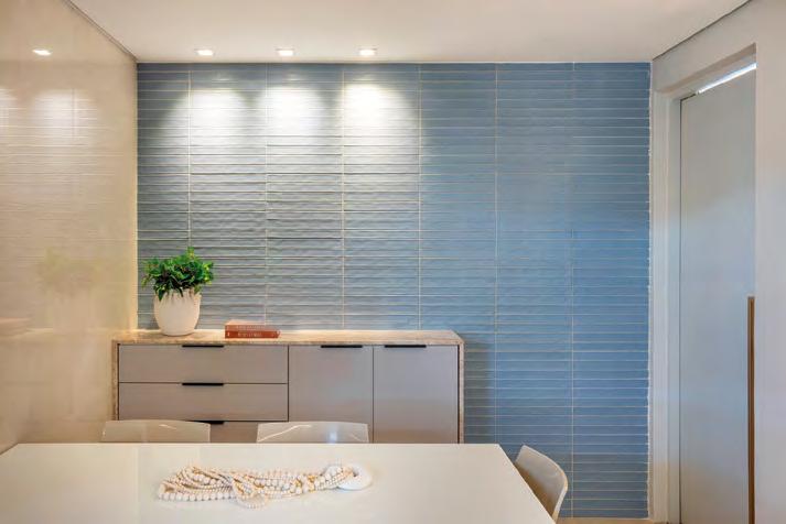 NATUREZA EM PAUTA. O destaque da Gabriella Revestimentos é a Coleção Essência 2026, lançamento que traduz o DNA da marca por meio de formas, texturas e cores conectadas à arquitetura contemporânea e a referências naturais e afetivas. Produzida em porcelanato e monoporosa, a coleção propõe soluções atemporais para espaços com mais identidade. Já a coleção da Placas do Brasil celebra padrões inspirados na Mata Atlântica, traduzindo em superfície a riqueza visual e simbólica desse bioma. Entre os destaques, estão as peças assinadas pelo estilista Jay Boggo, nome de reconhecimento nacional e internacional, que imprime à coleção uma leitura autoral e contemporânea. O acervo conta ainda com a participação do artista Paulo Roberto Balbino, referência do cenário carnavalesco, ampliando o repertório criativo da linha e reforçando seu vínculo com a cultura brasileira.