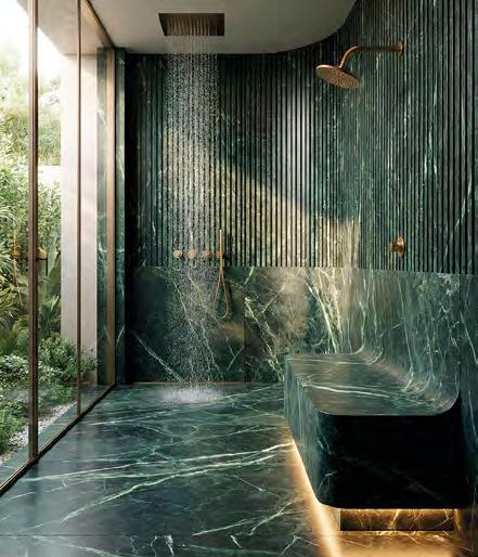 Nesta edição da feira a matéria ganha voz. Rochas de presença marcante, porcelanatos de estética bruta, metais mais precisos, soluções inteligentes para o banho e eletros cada vez mais integrados revelam um setor que já não pensa apenas em acabamento, mas em uma arquitetura mais sensorial, tecnológica e conectada à força expressiva dos materiais.