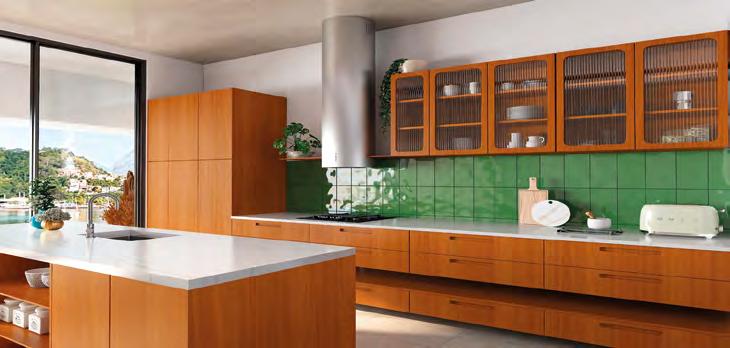 . Além das tonalidades claras e escuras, voltam à cena padrões madeirados já consagrados, como Mogno, Freijó e Cerejeira, reafirmando a madeira como uma linguagem atemporal no design de interiores. Entre os novos destaques da Berneck, Mogno Imperial e Cerejeira Natural atualizam essa presença com requinte visual, calor e sofisticação.