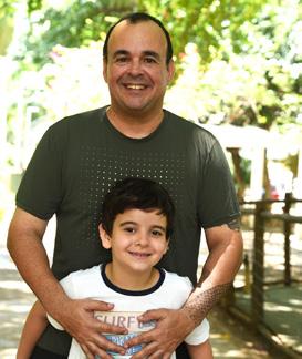 Gustavo e seu filho curtindo a tarde na pracinha