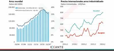 Y eso continuó en los siguientes meses con la industria local aprovechando este empuje externo -y la menor oferta regional- para colocar a altos precios el arroz 2023/2024.