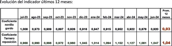 Coeficiente de relaciones de intercambio de los mercados ganaderos - Informe a JUNIO de 2024