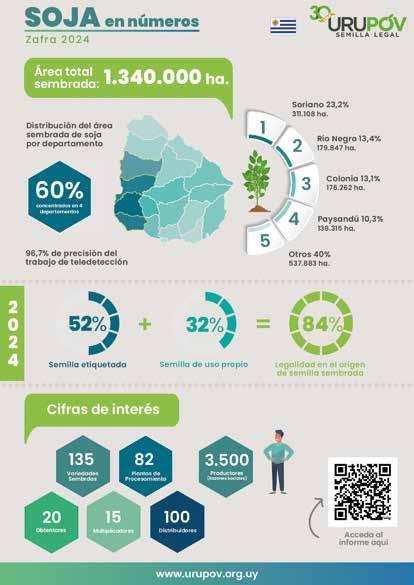 comerciales y certificadas ("semilla etiquetada"), mientras que el 32% se sembró con semilla de uso propio dentro del Sistema de Valor Tecnológico (SVT) de URUPOV.