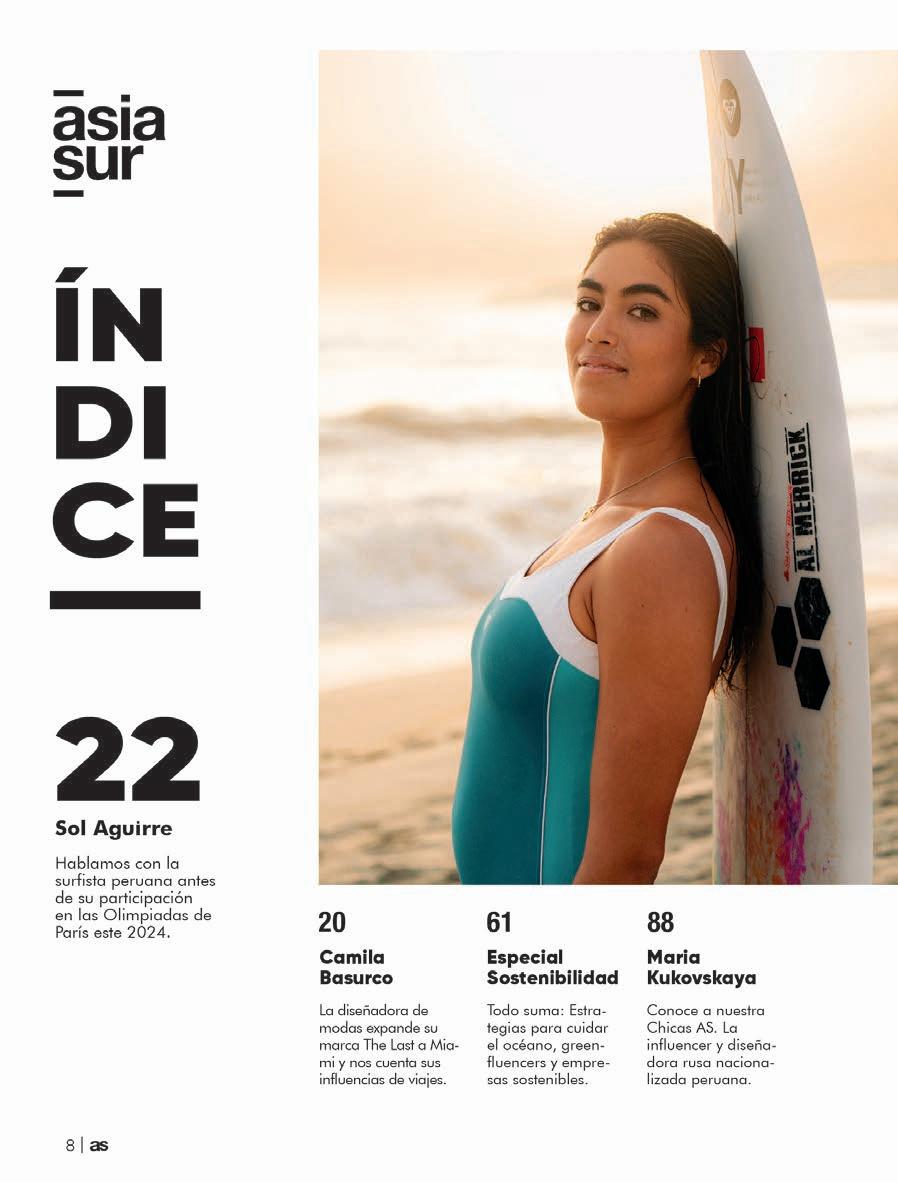 Las olas y contracorrientes de Sol Aguirre la han llevado a convertirse en la única surfista peruana que nos representará en los Juegos Olímpicos de París 2024. Además, conoce a Maria Kukovskaya, la talentosa diseñadora rusa nacionalizada peruana, quien también es nuestra chica AS.