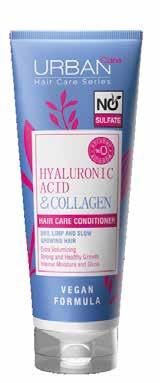 SHAMPOO Y ACONDICIONADOR HYALURONIC EL SHAMPOO Y ACONDICIONADOR URBAN CARE HYALURONIC ACID & COLLAGEN EXTRA VOLUMIZING HAIR CARE HIDRATA, FORTALECE Y APORTA VOLUMEN, PROMOVIENDO UN CABELLO MÁS SUAVE, BRILLANTE Y SALUDABLE SIN DEJARLO PESADO EN NINGÚN MOMENTO.