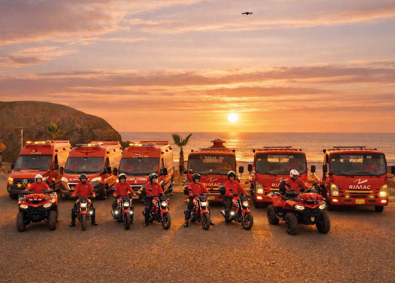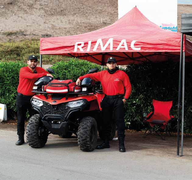 fiable y mucho más relajado. La protección también se extiende a quienes practican el deporte de ciclismo de montaña, contando con puntos de emergencia y apoyo especializado en zonas como Lomas de Asia y puntos estratégicos en el distrito de Santa Rosa. Carpas de atención, paramédicos, cuatrimotos, monitoreo con dron y asistencia mecánica permiten responder rápidamente, incluso en áreas de difícil acceso, reforzando una visión de