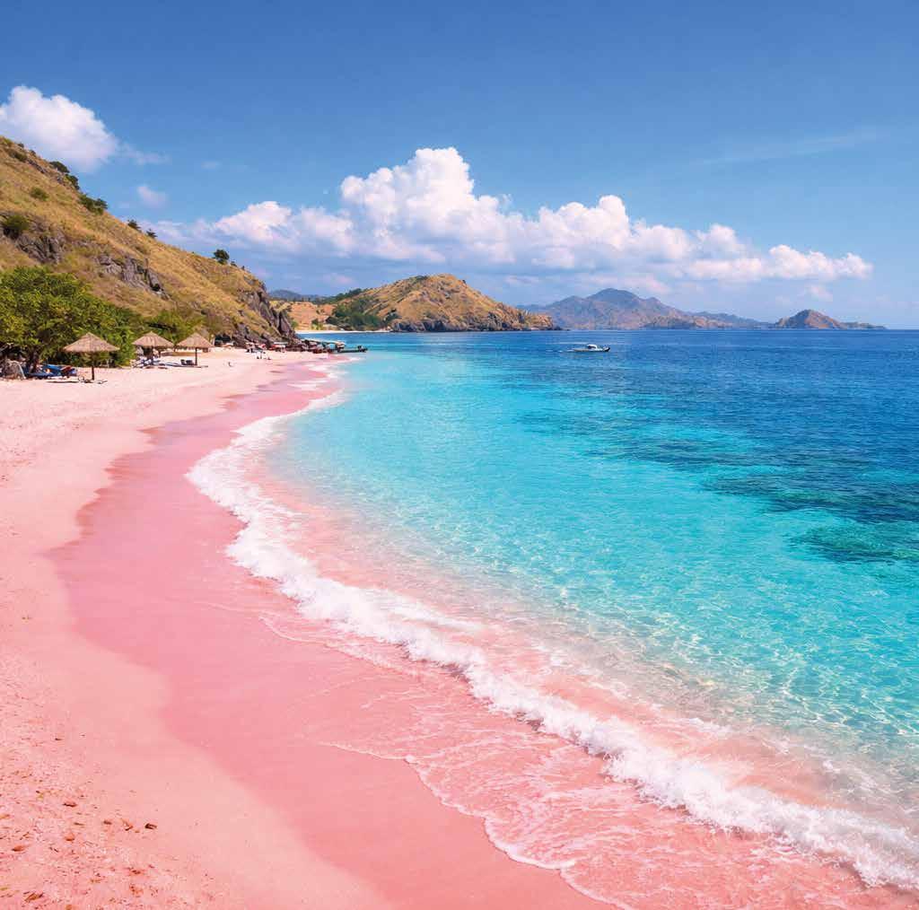 Encabezando esta lista está Pink Beach, en Indonesia. Esta playa es famosa por su arena de color rosado, tono que se genera por la mezcla de fragmentos de coral rojo con arena blanca. Un destino que combina naturaleza extraordinaria con la posibilidad de explorar el Parque Nacional de Komodo.