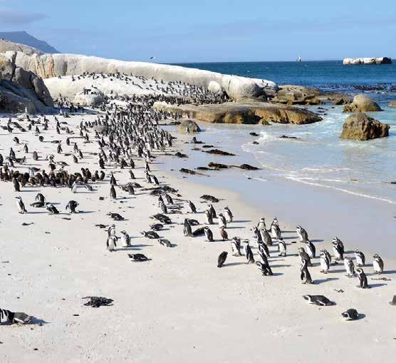Más al sur, en Sudáfrica, la Playa de Boulders ofrece una experiencia única: caminar junto a una colonia de pingüinos africanos en su hábitat natural. Ubicada en la península del Cabo, esta playa combina la tranquilidad de sus calas con la cercanía de esta especie icónica.