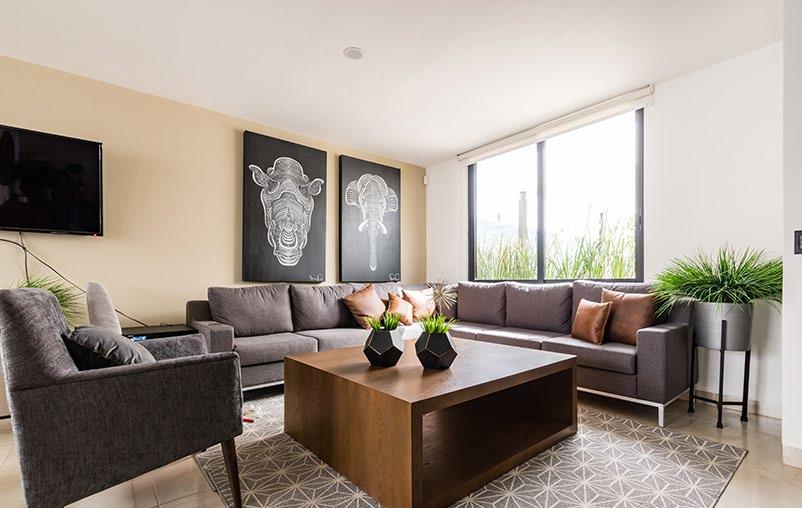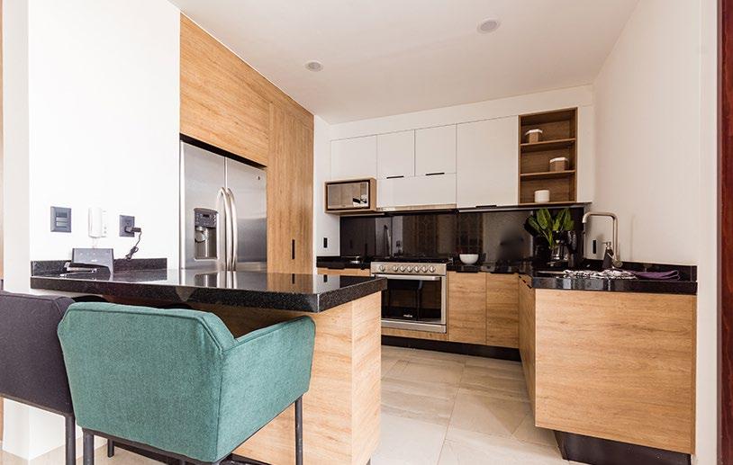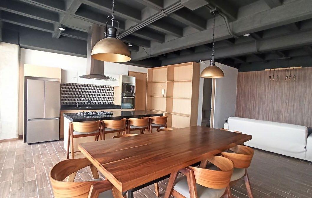 EN RENTA Departamento Nuevo Amueblado, estilo industrial, con muebles en madera y excelentes acabados, equipado con cocina con barra de granito, refrigerador doble puerta, horno eléctrico, horno de microondas.