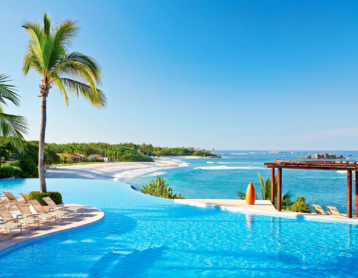 Sus habitaciones y suites —muchas con piscinas privadas— se complementan con una oferta gastronómica que mezcla cocina mexicana, sabores asiáticos y ceviches frente al mar. Spa, piscinas y espacios sociales con vistas al Pacífico completan una experiencia donde el diseño, la música y la naturaleza conviven en perfecta armonía.