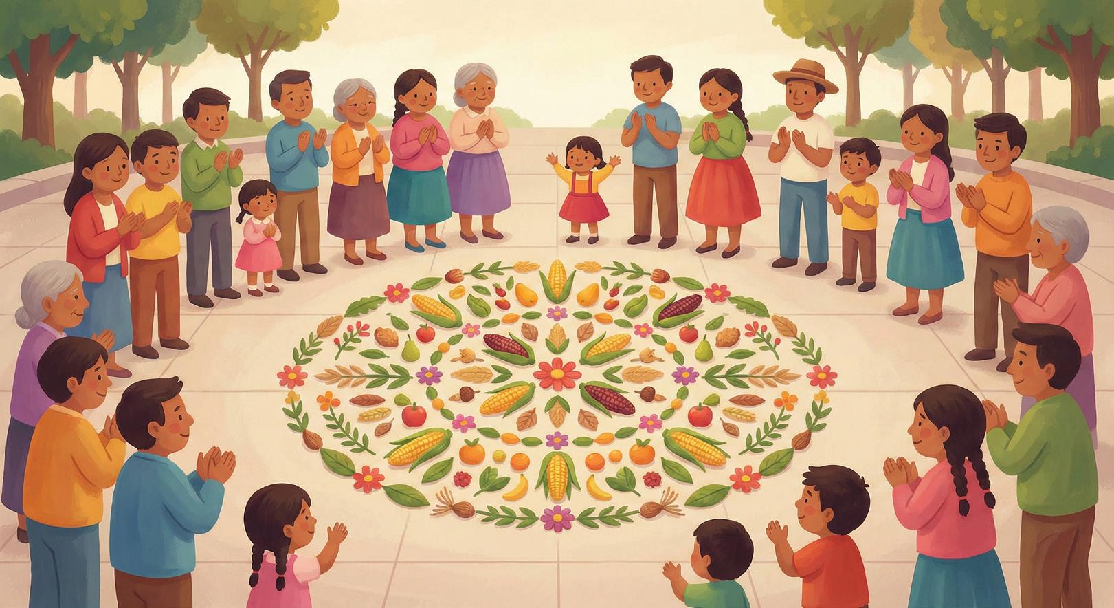 La gente miraba, aplaudía, sonreía sin empujarse. —Aquí celebramos lo que la tierra nos regala —nos dijeron—. Por eso no jugamos con agua: jugamos con gratitud.