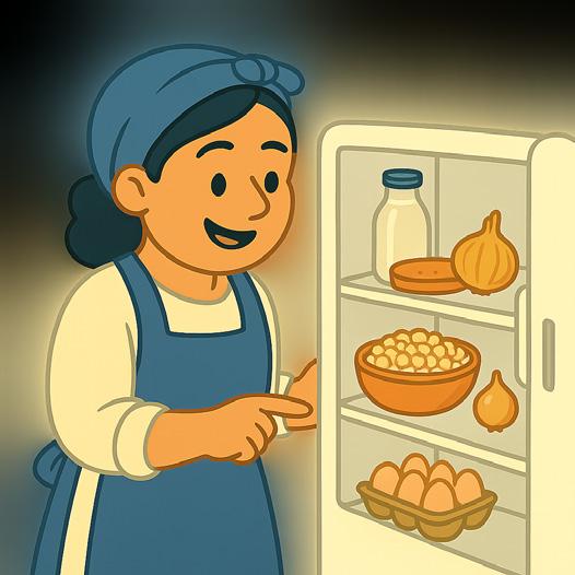 Un día abrí la nevera y vi un poco de mote, un huevo y cebolla. Pensé: ¿qué puedo preparar con esto?