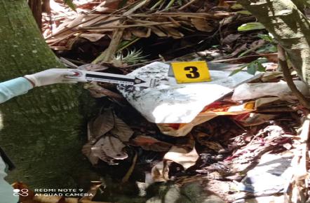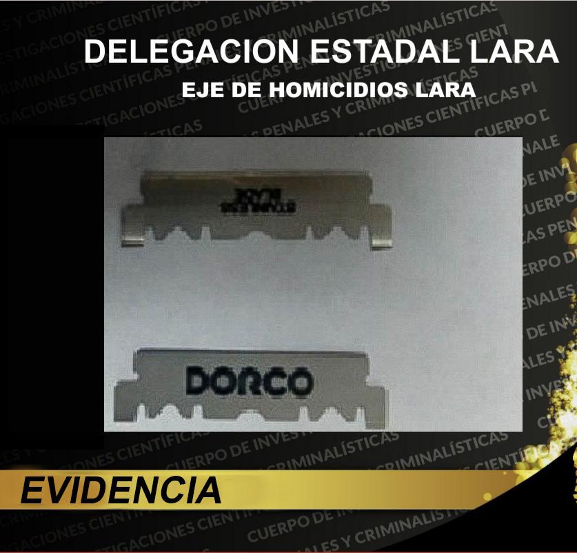 Se conoció que la hojilla que usaron como uno de los medios de comisión la habían tirado al salir de la vivienda, pero el terreno eran muy amplio, sin embargo treinta funcionarios, luego de varias horas de búsqueda, dieron con dos láminas de metal de aspecto plateado, que unidas forman lo que comúnmente se denomina hojilla, se realizó la inspección técnica del sitio del hallazgo y se colectó la evidencia para ser remitida al laboratorio criminalístico correspondiente.