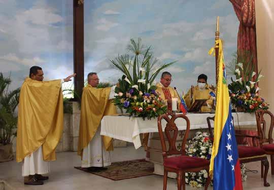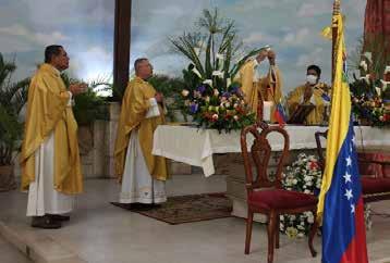 de la eucaristía oficiada por el señor obispo castrense de Venezuela, mon señor Benito Adan Méndez Braca monte y los concelebres padre Carlos Alberto Boully Gómez, padre Ricardo Bello y el padre Omar Gómez a quien le fueron extendidas palabras de agra