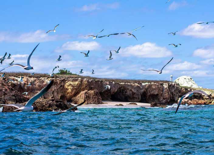 La primera parada de la embarcación es el control del Parque Nacional Islas Marietas, ya que al ser un Área Natural Protegida el acceso está restringido a 116 personas diarias. Los representantes de la Comisión Nacional de Áreas Naturales Protegidas dan turno a la embarcación, pues solo 35 personas pueden estar simultáneamente en Playa Escondida. Además, recuerdan a los visitantes que contarán con 30 minutos de estancia desde el momento en el que se da el acceso y que no pueden extraer ningún tesoro natural de la playa. Los guías aprovechan la espera para rodear las islas y mostrar algunas de las aves migratorias que las habitan, entre ellas el deslumbrante piquero patiazul, un ave que, como su nombre lo dice, sobresale por el azul intenso de sus patas, así como otras cavidades que también sorprenden por su forma e inexplicable origen.