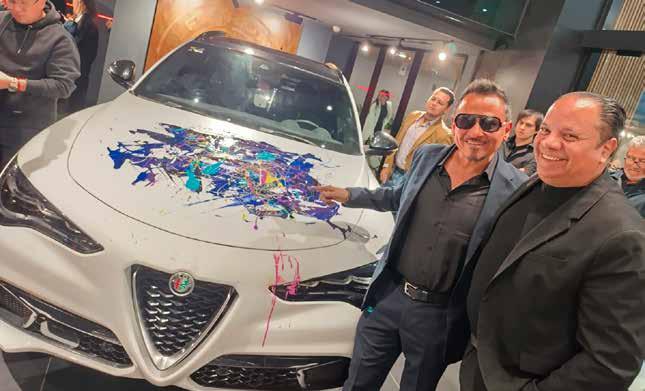 La agencia de autos Alfa Romeo Country ubicada en la zona bursátil de Guadalajara que dirige su gerente Román Galindo, ofreció una interesante intervención del artista plástico Pedro Carbajal Maldonado, en el mundo del arte conocido como ‘PKO’, la noche del pasado jueves 15 de enero, abordó como lienzo el cofre de una Stelvio TI semi deportiva, motor 2.0 turbo, caja de 8 velocidades, rines 20 de aluminio ,que registra de 0 a 100 kms en 5.4 segundos, closter digital, asientos de piel, quema coco panorámico, sonido Harman Kardon de ocho bocinas, face lip con logo nuevo que caracterisa a Alfa Romeo. “El arte que me gusta trabajar le llamo ‘arte emoción’, creativo, espontáneo, la energía que cargo en ese instante la expreso y la plasmo en el lienzo, esta ocasión el extraordinario cofre del semi deportivo Alfa Romeo fue mi lienzo, inspirado desprendí todas mis emociones, todo redunda el micro y en el macro somos un átomo, el universo, cada célula de nosotros, el infinito, obviamente todo de la mano de Dios, todo va alrededor de eso, las emociones expresiones intangibles, son las que nos mueve, lo más importante es el amor, la fé, la lealtad, y estas emociones son las que trato de plasmar y compartir, creando una extraordinaria sinergia”