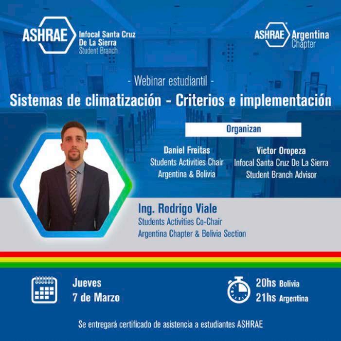 Auspiciada por el Capítulo ASHRAE de Argentina y la Cámara Argentina de Calefacción, Aire Acondicionado y Ventilación y la adhesión de la Asociación Argentina del Frío y la Cámara Argentina de Industrias de Refrigeración y Aire Acondicionado (CAIRAA)