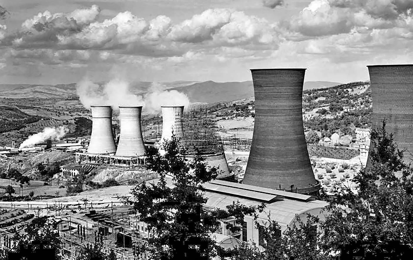 La planta de Larderello en la región de la Toscana de Italia fue la primera central de energía geotérmica en el mundo. Se completó en 1913. Foto: década de 1950.