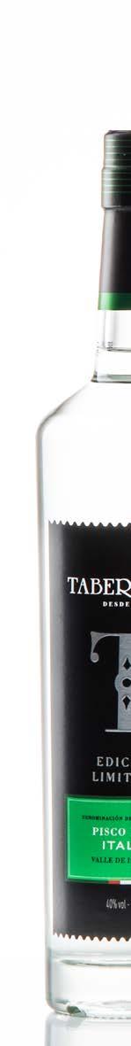 tiva principalmente tres de las ocho variedades antes mencionadas: Quebranta, Italia y Torontel. Estas dan origen a tres líneas de pisco. En primer lugar, tienen la multipremiada línea La Botija que está compuesta por un puro Quebranta, un puro Italia y un Acholado. En segundo lugar, está la línea de Tabernero Edición Limitada, donde encontramos un pisco con mayor complejidad y concentración de aromas. También elaboran Quebranta, Italia y un Acholado.