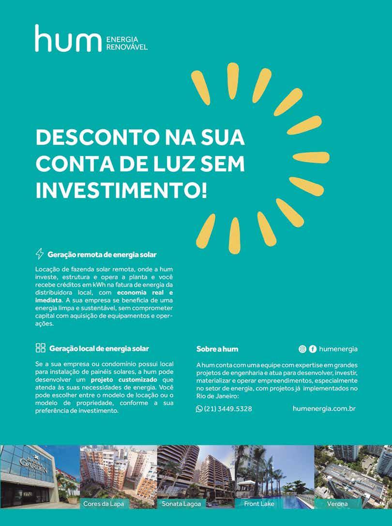 empresa. “A gente fez o contrato no fim de 2022 e, desde então, tivemos um desconto de 18% na conta de luz do condomínio. Estamos muito satisfeitos.”
