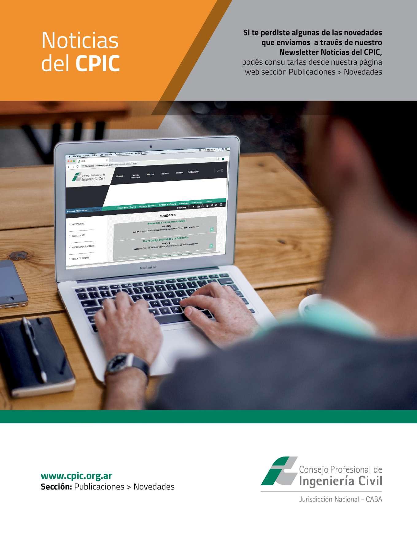P o r c o n su lta s y comenta r i os s o br e e s ta publicación, f a v o r de d ir i g i rs e a: D i r ect or d e Revi s ta C PI C, C o n s ejo Pr o f e s i o nal de I n g en ie r ía Ci v il , A l s ina 4 2 4, P i s o 1º , ( C1087 AAF) , Ciudad A utó n o -