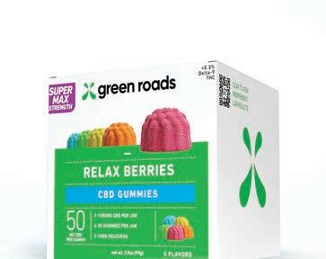 Relax Berries de Green Roads, gomitas con 50 mg o 25 mg de CBD, ideales para una relajación profunda según la tolerancia del usuario.