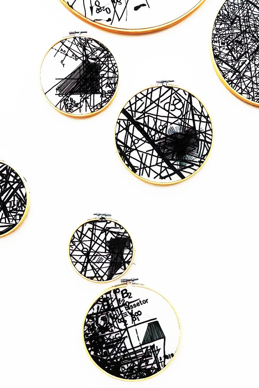 A segunda reflexão, ainda empregando os esquemas da geometria descritiva, envolve o trabalho industrial e a artesania. Nas artes contemporâneas, qual o lugar desses “modos de fazer”? Em um mundo mediadopelamáquina,acrençanasuaobjetividadetendeaomenosprezo pelo que é feito pela mão humana. Derdyk, em põe em dúvida essapremissa.Aobjetividadedamáquinaécolocadaemxeque–asutura e o fabril se unem. As costuras industriais com as intervenções manuais provocam novos adensamentos se transformando em proposta que desafia os entendimentos convencionais sobre o que seria “arte”.