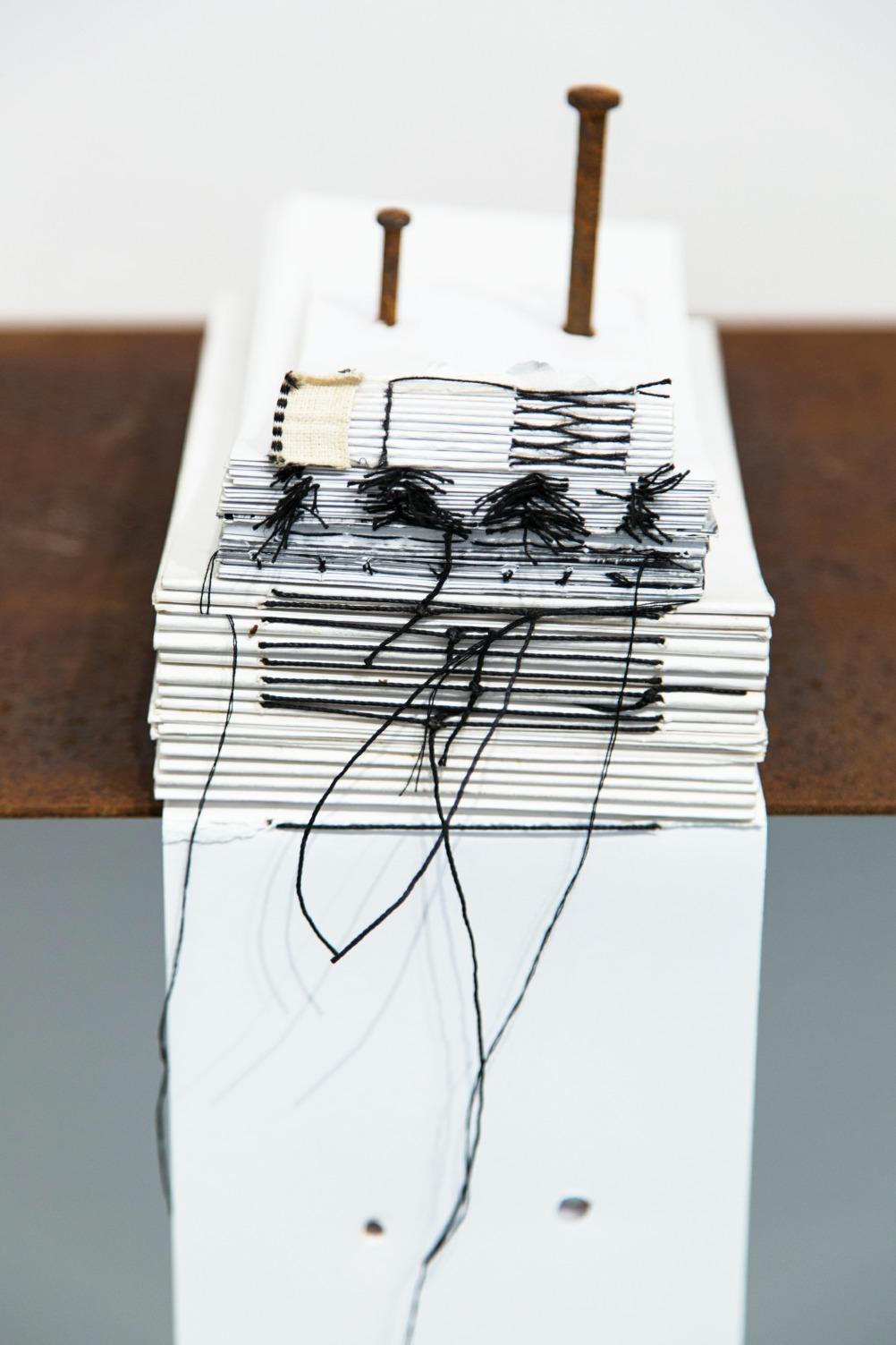 Sucinta, exata e densa, a mostra reúne os trabalhos: (que dá nome à exposição) é uma instalação a série são costuras feitas por máquinas industriais com intervenções manuais; é um tridimensional que discute o uso do carvãocomocombustívelfóssil; é livro de mesa acompanhado de três impressões e, é o que chamamos de livro de artista, impresso em serigrafia com tiragem de 100 exemplares. A campanha expositiva prevê ainda ativações (roda de conversa e visita guiada) e o lançamento do livro (editora Relicário).
