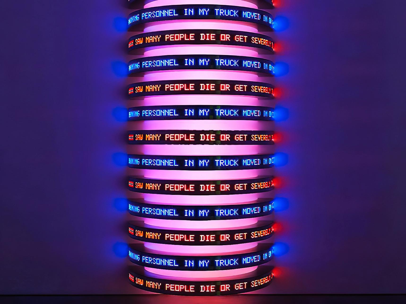 USAR PALAVRAS E LINGUAGEM COMO MEIO EM SEU TRABALHO, CULMINANDO NA SÉRIE TRUÍSMOS (1977-1979). HOLZER FOI A PRIMEIRA ARTISTA MULHER SELECIONADA PARA REPRESENTAR OS ESTADOS UNIDOS NA BIENAL DE VENEZA E SUA EXPOSIÇÃO DE 1990 NO PAVILHÃO AMERICANO GANHOU O PRÊMIO LEÃO DE OURO DE MELHOR APRESENTAÇÃO NACIONAL. CONVIDAMOS A ARTISTA PARA FALAR DE SEU PROCESSO DE INSPIRAÇÃO E CRIAÇÃO