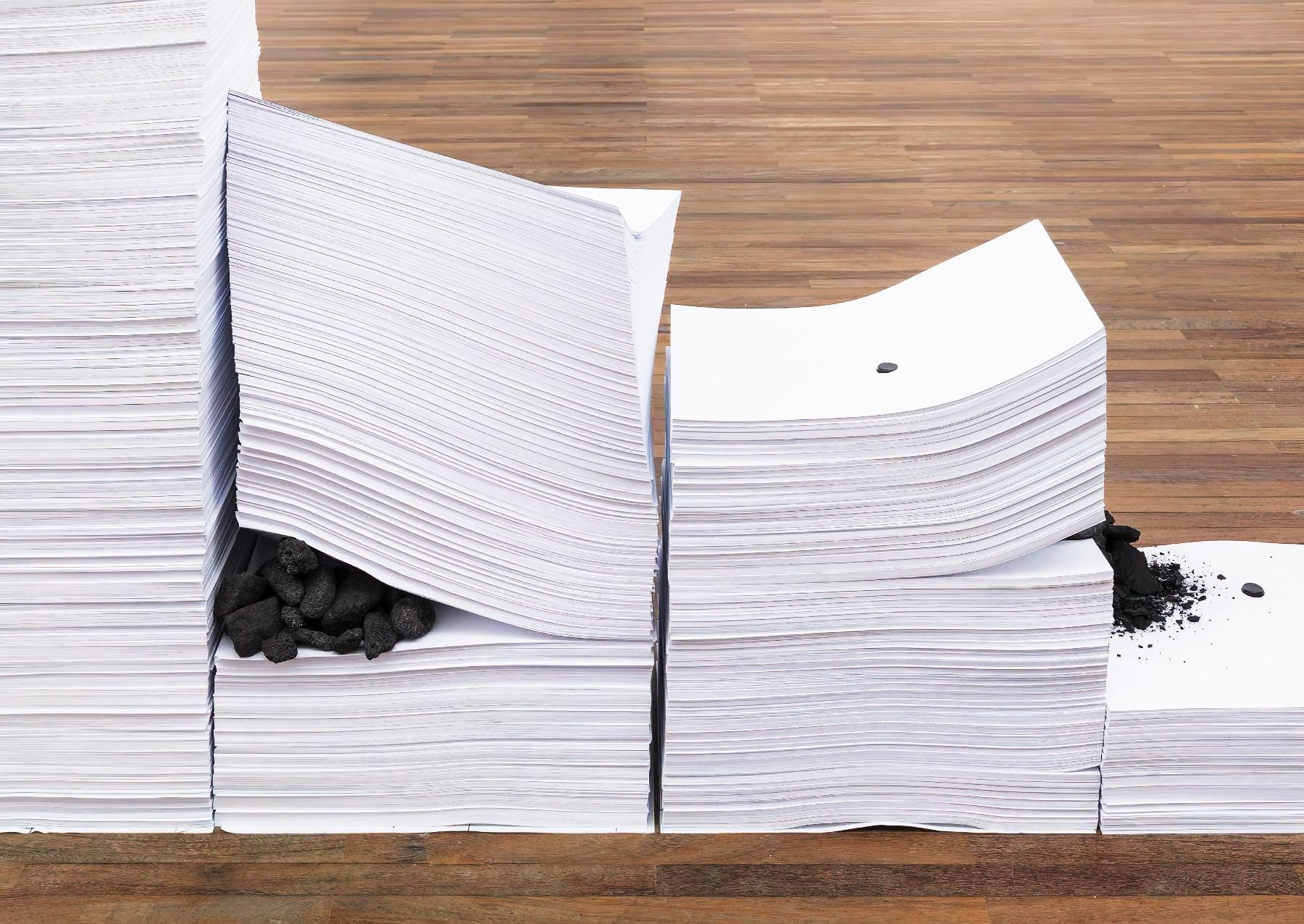 E, por fim, no terceiro eixo de observação, está a denúncia dos impactos ambientais por meio da arte. O uso da geometria descritiva, a referência às máquinas, ao fabril e ao carvão – combustível fóssilqueimpulsionouaRevoluçãoIndustriale,por conseguinte, o capitalismo – são aspectos presentes nas peças da mostra. Mas, em tese, o recado está lá: como lidamos com a produção industrial e a intensa exploração dos recursos naturais? Como encaramos as consequências do processo civilizatório colocado sob esses moldes? A verve de educadora e de designer gráfica de Edith Derdyk nos dispõem os campos semânticos do espaço expositivo da mostra – em instâncias profundas, ela nos faz pensar sobre os dilemas de nosso mundo.