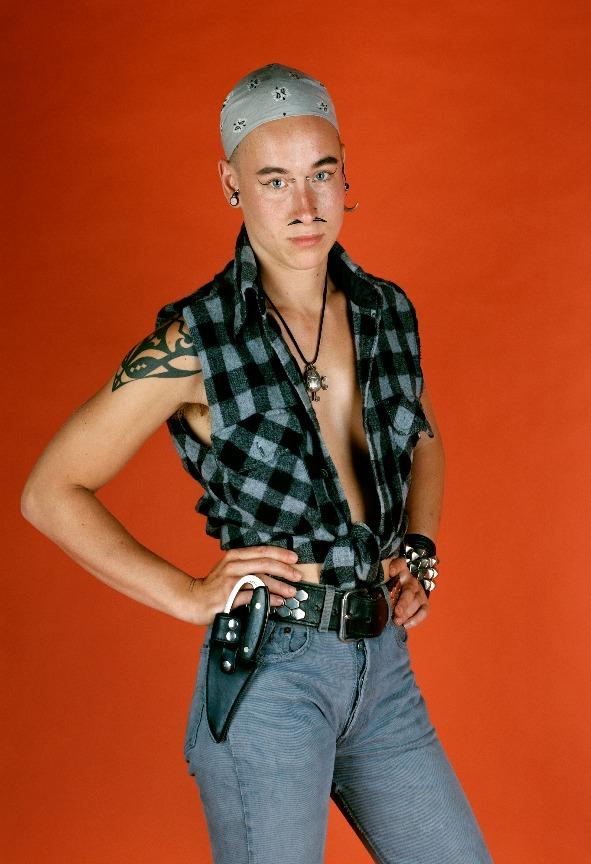 Abraçando esses pontos, o MASP de São Paulo hospeda, até o dia 28 de outubro, a primeira individual de Opie no Brasil, cujo título quer mexer tanto com a palavra “gênero” quanto com as convenções do “retrato”. Trata-se de uma exposição especial, unindo 66 fotografias feitas ao longo de 35 anos de carreira (de 1987 a 2022), juntamente a 21 “rostos” do acervo europeu do museu, cobrindo, assim, um arco temporal de 400 anos. Mais do que isso, pela primeira vez na história do MASP os cavaletes de vidro de Lina Bo Bardi são utilizados para uma apresentação fotográfica e chegam ao andar inferior do museu, rompendo a própria exclusividade à coleção permanente. Uma pequena revolução que abre a uma leitura completamente inédita tanto das obrasdoarquivo,quantodaprodução deOpie,construindoumpercursoque interliga inúmeras camadas perceptivas, estéticas e imaginativas. Catherine Opie observou de perto o processo macropolítico que estava acontecendo nos corpos entre o fim dos anos 1980 e o início dos anos 1990, acompanhando o término da Guerra Fria e o surgimento das lutas identitárias, que ganharam protagonismo na disputa intelectual e social, até chegar ao hoje em dia vem habitualmente sendo chamada de teoria de gênero, criando grandes conflitos: Catherine Opie fotografava uma geração que estava