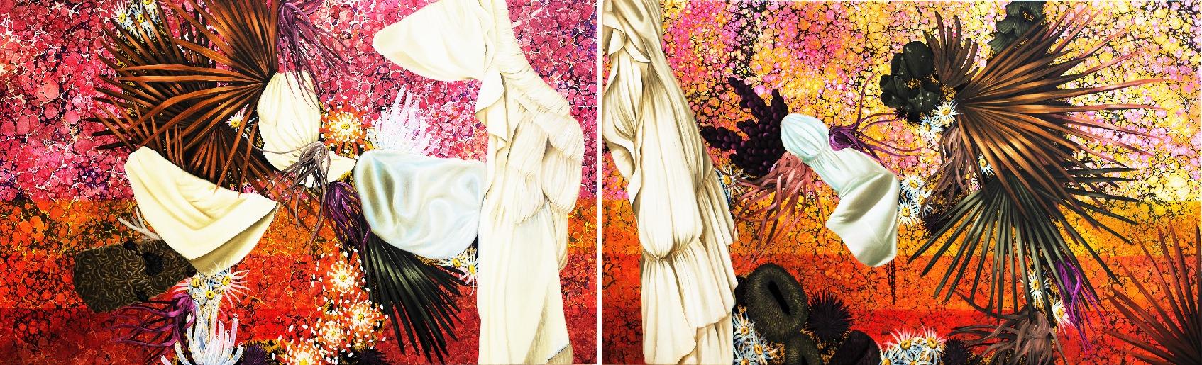 A exposição , de Mariana Palma, é de tirar o fôlego. A artista explorou os espaços mais desafiadores da arquitetura de Oscar Niemeyer – o Olho, a escada e uma das salas inferiores da curva descendente do Olho – para nos dar uma aula magistral sobre sua visão da natureza, um estilo barroco decididamente contemporâneo que abrirá o mais amplo espaço possível à imaginação dos visitantes.