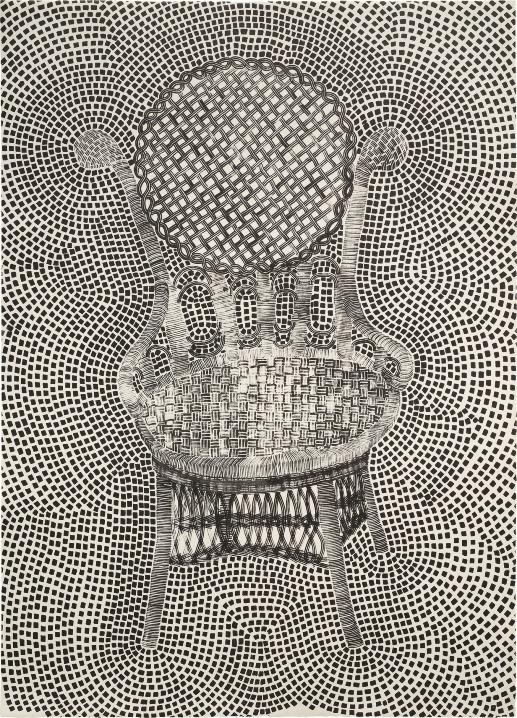 Asawasededicouaoespaçonegativotantoemduas quanto em três dimensões. Filha de budistas zen, ela foi treinada desde cedo em caligrafia. Nessa prática meditativa,comoelarefletiu,“vocênãoobservaoque o pincel está fazendo, mas os espaços ao redor dele. Observa o que ele não está fazendo, cuidando tanto do espaço negativo quanto do espaço positivo”. Asawacontinuouaexperimentartécnicascaligráficas na vida adulta, como em um grupo de desenhos abstratosdofinaldadécadade1950.Inspiradaspelas árvores do Golden Gate Park, em São Francisco –ondeaartistadesenhavacomfrequência,sozinhaou acompanhada – essas obras são compostas por poçasdetinta,traços,respingoseborrões.