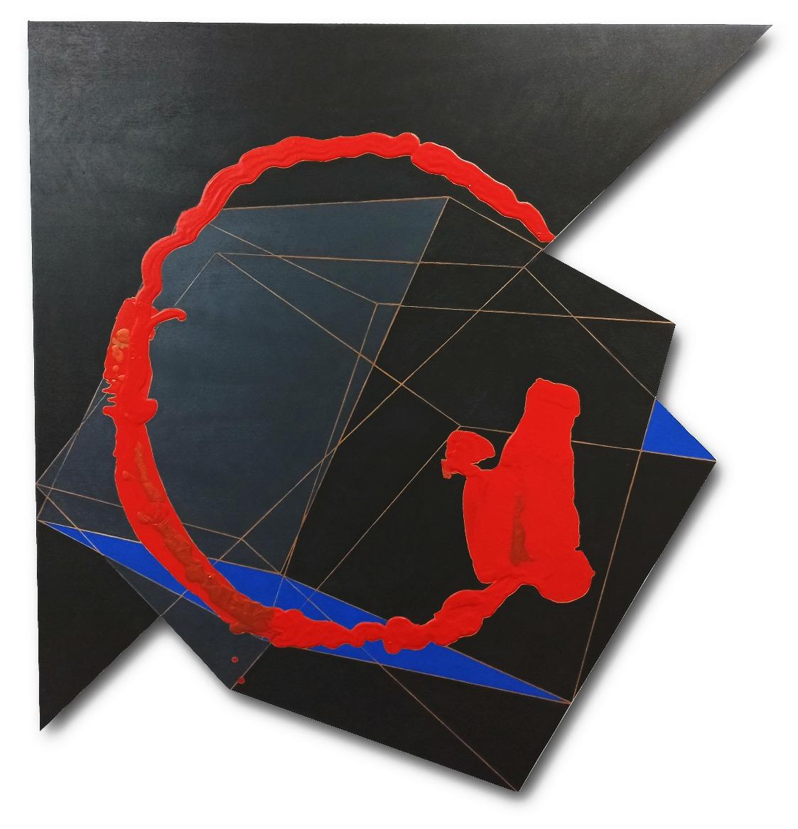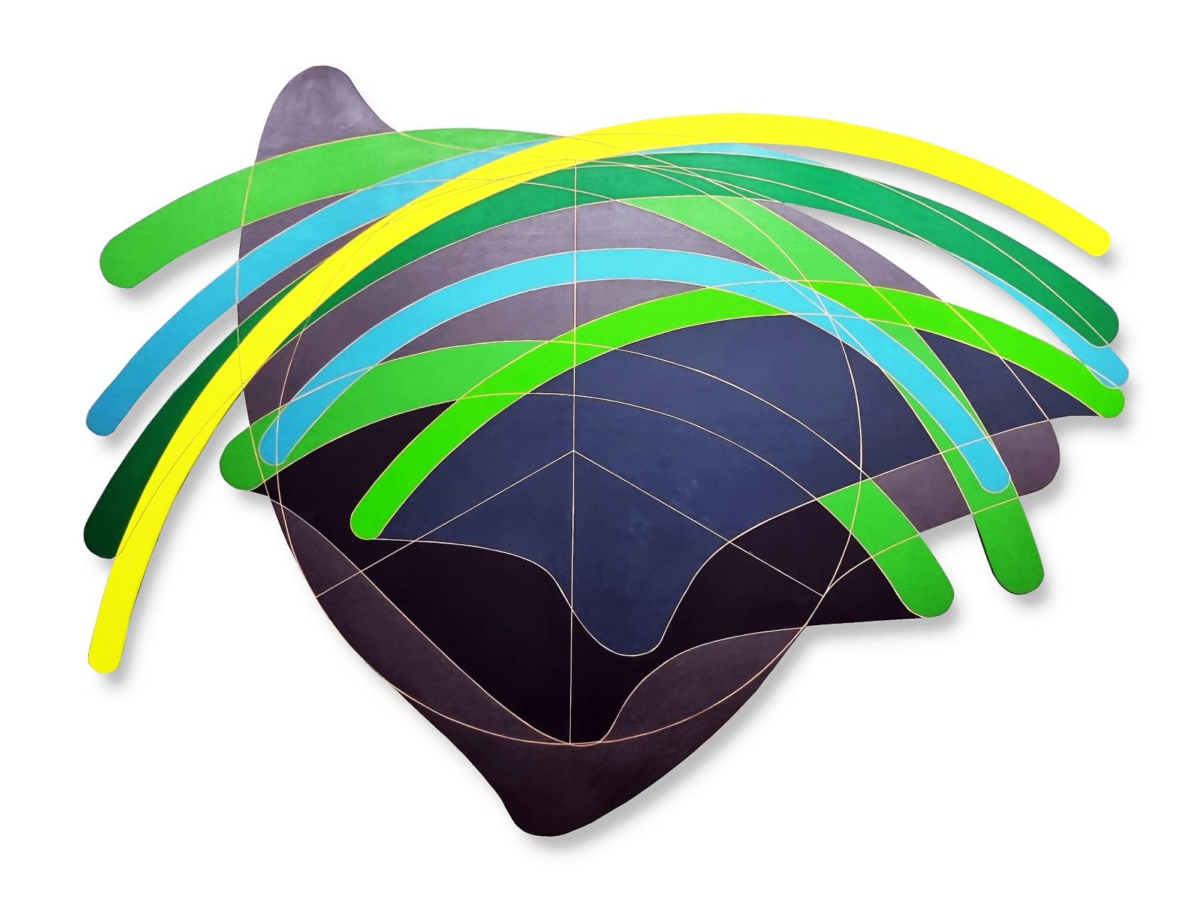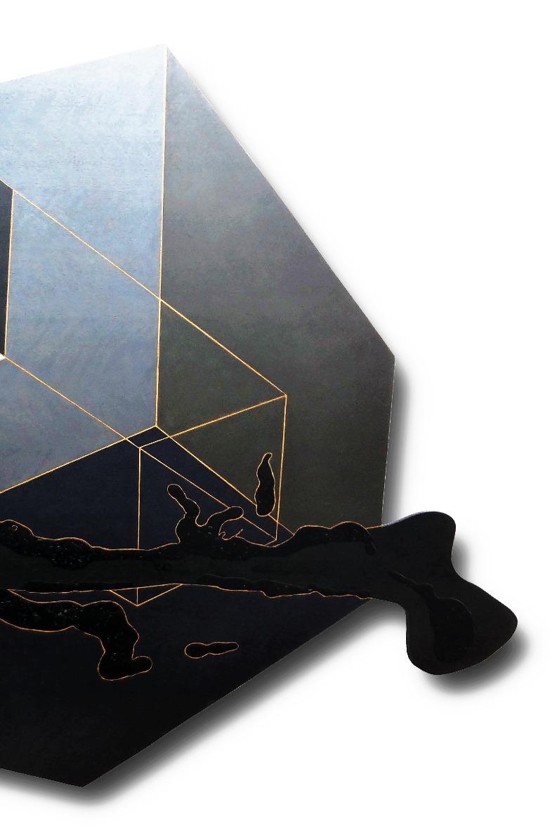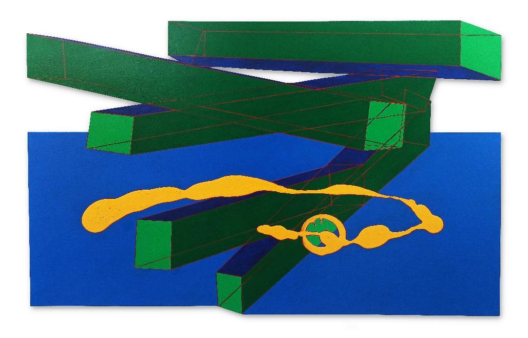 “A obra compõe esse conjunto mais contemporâneo da minha obra, que está sendo exposto no Paço Imperial e a curadora Denise Mattar chamou de . Na verdade, essapeçaazulsintetizaaideiaqueeutenhosobreaquestão daorganicidadeemcontrastecomasformasprogramadas geometricamente. É uma proposta que eu tenho de trabalharcomageometria,masnãonocaráterconcretista, que tem certo purismo geométrico e matemático, mas a geometriasendoutilizadacomoumaexpressãotãoorgânica quantoumapincelada,umgesto.Essapeçaécompostapor prismas geométricos – que trazem a ideia de exatidão, precisão,fazemcomqueoespectadorentendaavolumetria comoalgoexatoeprogramado–,quesecontrapõecomum grande esparramar de tinta ocasional, é relativamente controladopormim,maseuqueroquesejaomaisocasional possível dentro de um determinado contexto estético que