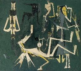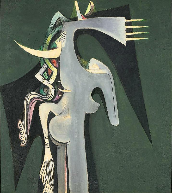 Quando Lam retornou a Cuba, levou consigo esculturas africanaseoceânicaseredobrou seus esforços para aperfeiçoar uma prática que conectasse os elementos poéticos e formais das culturas diaspóricas. Abandonou a vegetação exuberante e as cores vibrantes do início da década de 1940 em favor de figuras escultóricas representadas em uma paleta ricaeescura.“Derepente,minha pintura voltou a adquirir dramatismo”, afirmou. “Quis sacrificar todos aqueles aspectos encantadores da pinturaparasermaisdireto,mais precisoemminhaproclamação.”