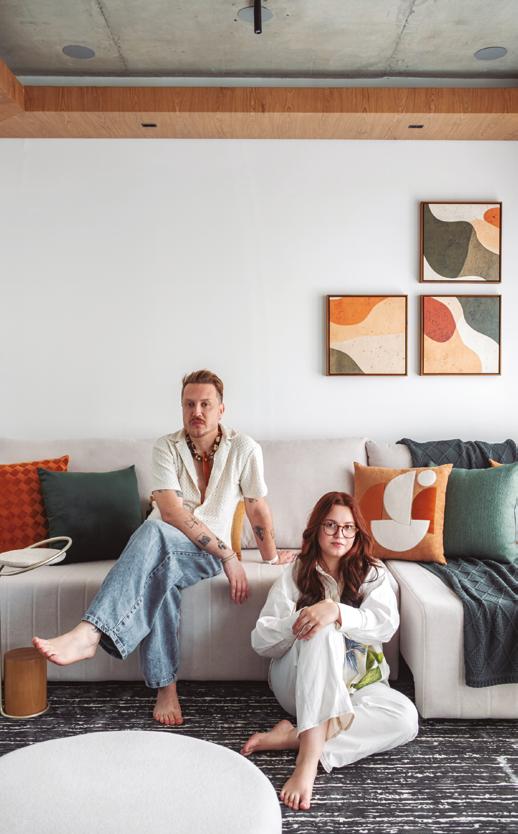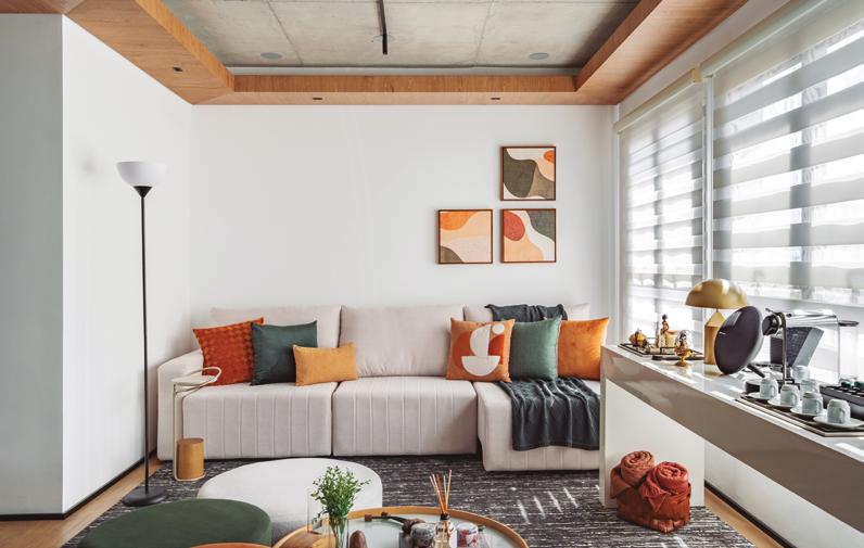 EM UM LAR SOFISTICADO, JOVEM E ACOLHEDOR COM TOQUES DE COR ESTRATÉGICOS