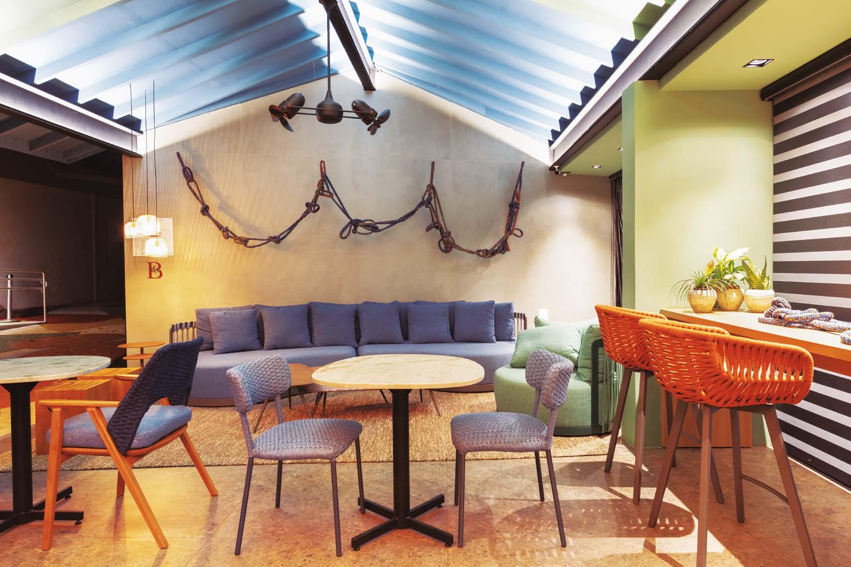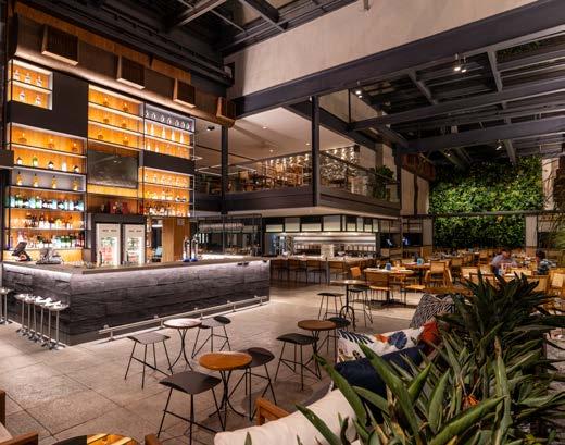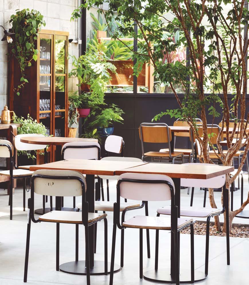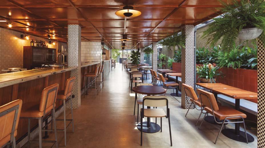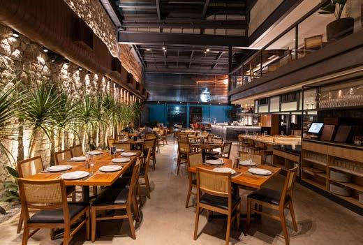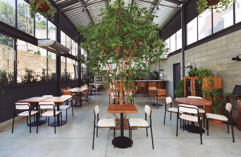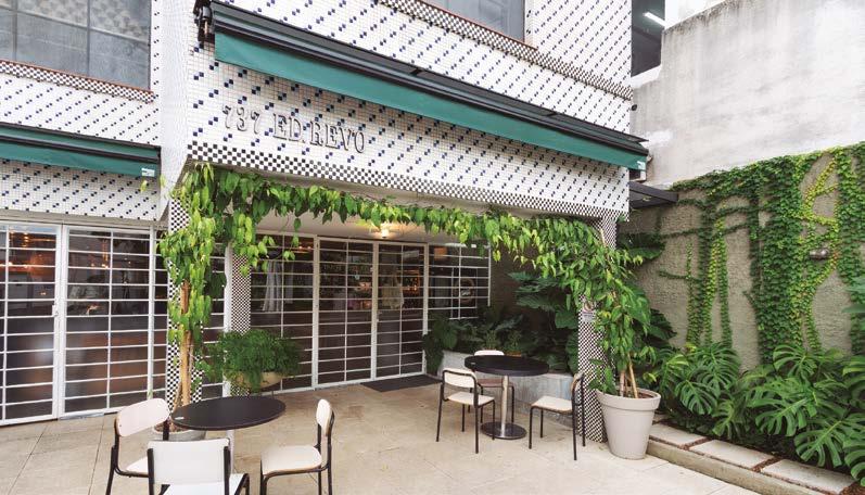 conceito utilizado. O térreo, anteriormente estacionamento do prédio, foi remodelado e se transformou em um amplo espaço gastronômico. A padaria, na parte da frente, convida para um café especial, com grãos torrados e moídos na hora.