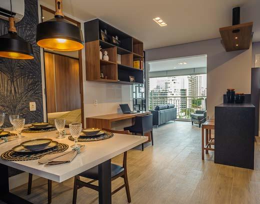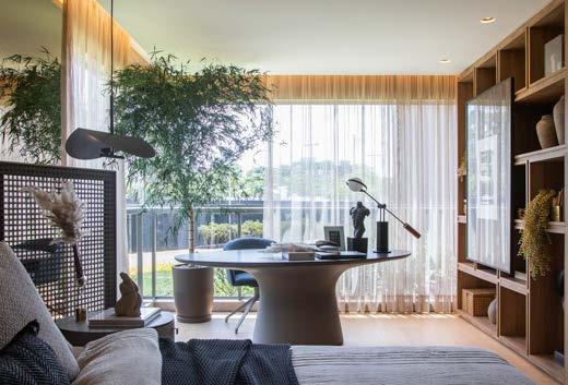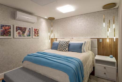 A decoração é contemporânea, desprovida de qualquer excesso, preza o conforto e bem-estar.