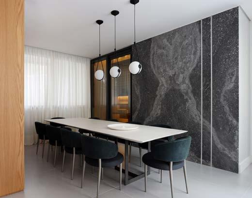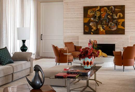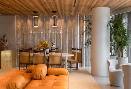 Na decoração, praticamente todo o mobiliário é italiano, com algumas peças vintages garimpadas, inclusive de Nova Iorque, mesclando com alguns objetos nacionais. “Todo o mobiliário foi especificado pelo nosso escritório. Gostamos sempre de misturar, de fazer um mix das peças, para criar projetos únicos”, comenta Roberto Migotto.