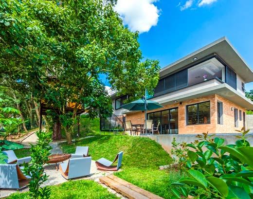 A paisagem externa é encantadora e permeia toda a residência pelos generosos