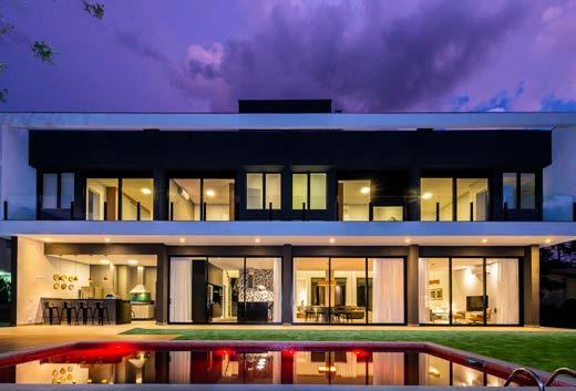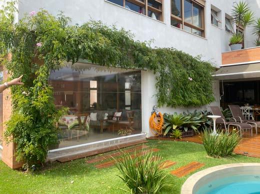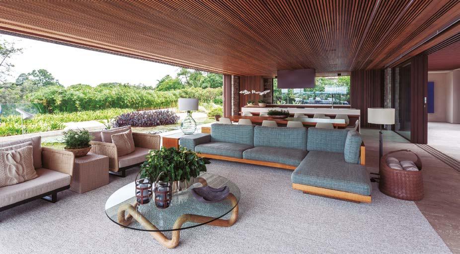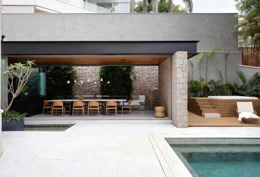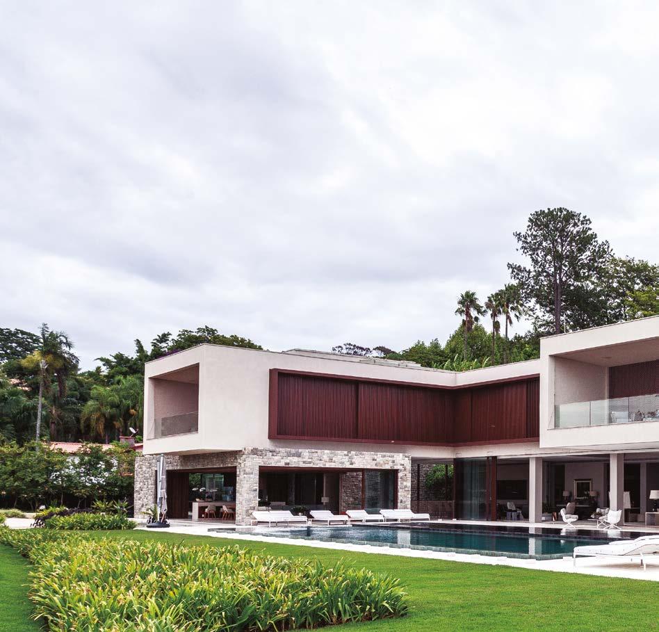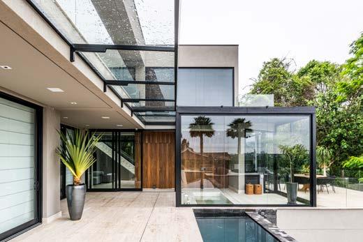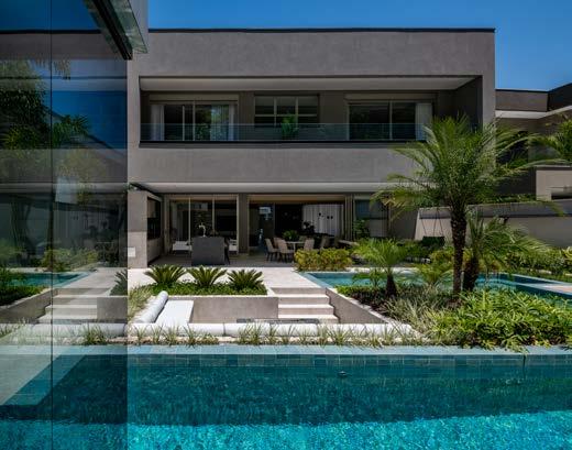 vão livres. A casa é cheia de panos de vidros que permitem que os moradores e visitantes enxerguem, de dentro da residência, a extensão da área de piscina e o paisagismo, assinado por Alex Hanazaki.