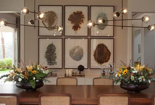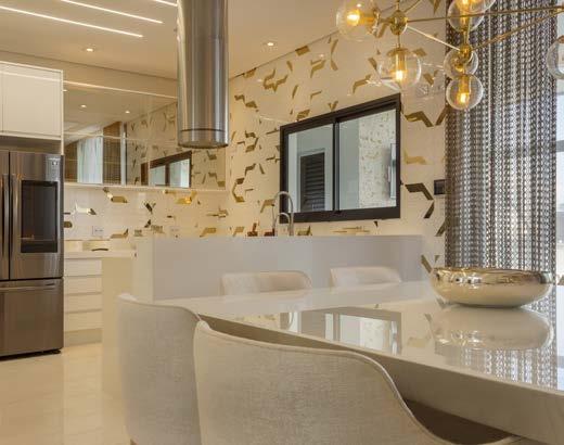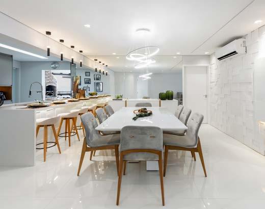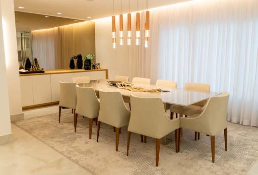 Elegância é a palavra que define a sala de jantar, que conta com mesa da area.v