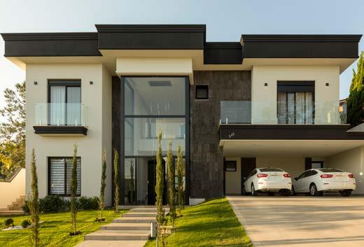 A casa foi construída do zero em um terreno amplo e com declive. No subsolo ficaram a garagem e a adega. Roberto Migotto optou por uma arquitetura de linhas