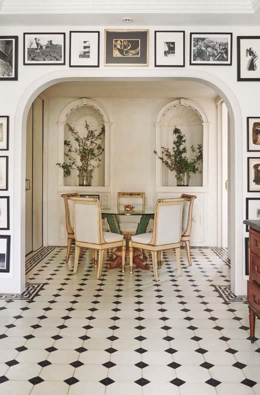 O ambiente, que antecede a sala de jantar, tem poltronas vintages da Minotti, revestidas em couro. O tapete foi desenhado com as cores especificadas na decoração.