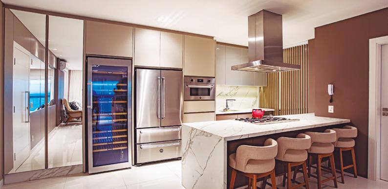 Com grande experiência em projeto de interiores, Beatriz Quinelato utiliza-se de cores, formas e plantas para trazer sofisticação para seus projetos, com destaque para soluções que a arquiteta alcança através da marcenaria para obter ambientes aconchegantes e com personalidade, além da inclusão de elementos em tons verdes.