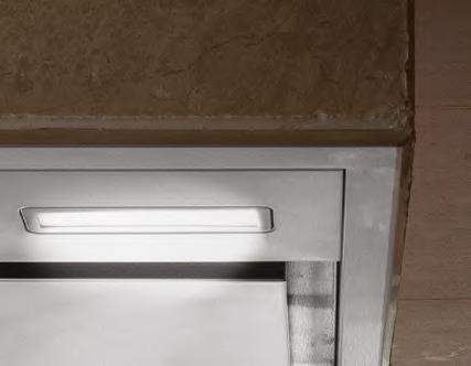 O bar foi acoplado na ilha central e se destaca pela sua inserção abaixo do nível da bancada, criada com o revestimento Neolith no padrão Strata Argentum com execução da Eccomarmi Marmoraria
