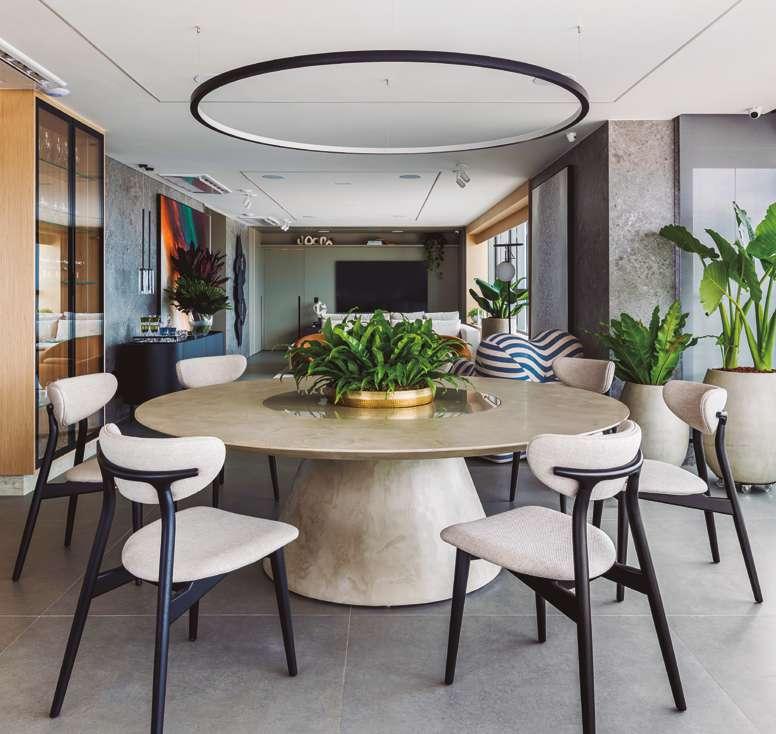 tranquilidade e leveza que permeia todos os ambientes. A busca por serenidade e a reconexão com a natureza começou através dos tons claros, que deixam os ambientes leves e acolhedores. Durante o processo criativo, uma pesquisa foi conduzida para identificar pequenos ateliês e estúdios que trabalham com materiais como cerâmica, concreto e madeira de forma original e criativa. O objetivo era encontrar profissionais e artesãos que trouxessem uma visão inovadora para pequenos objetos